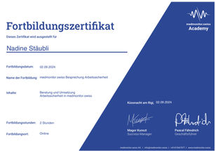 • Diverse Fortbildungszertifikate by medmonitor.swiss 2023-2025